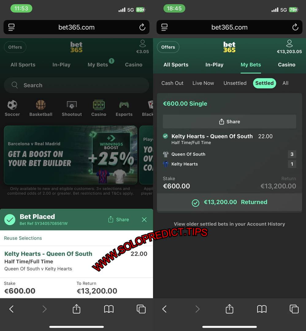 BET365 PLACED BET AND AFTER WIN PROOF. 13.12.2025 (SATURDAY) 23.00 ODDS WIN