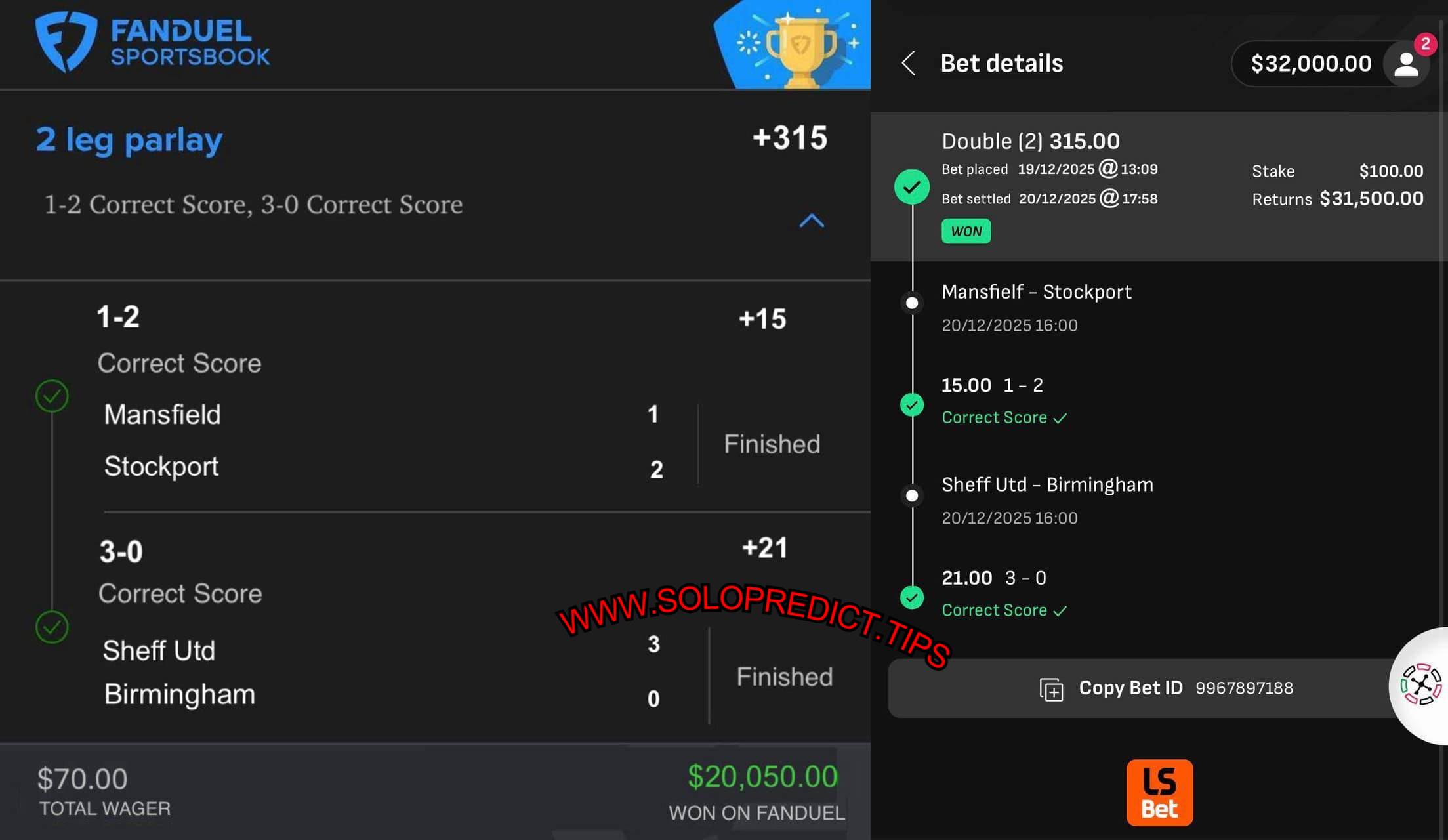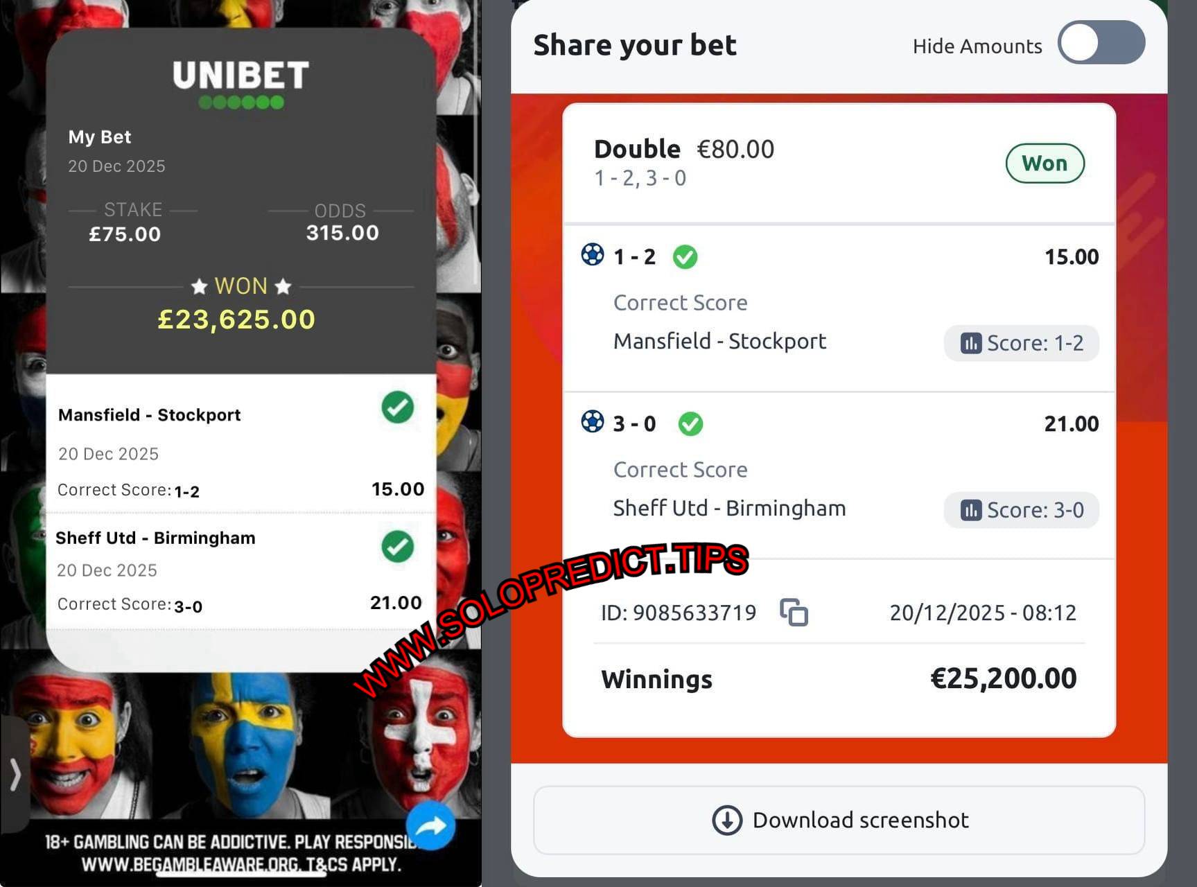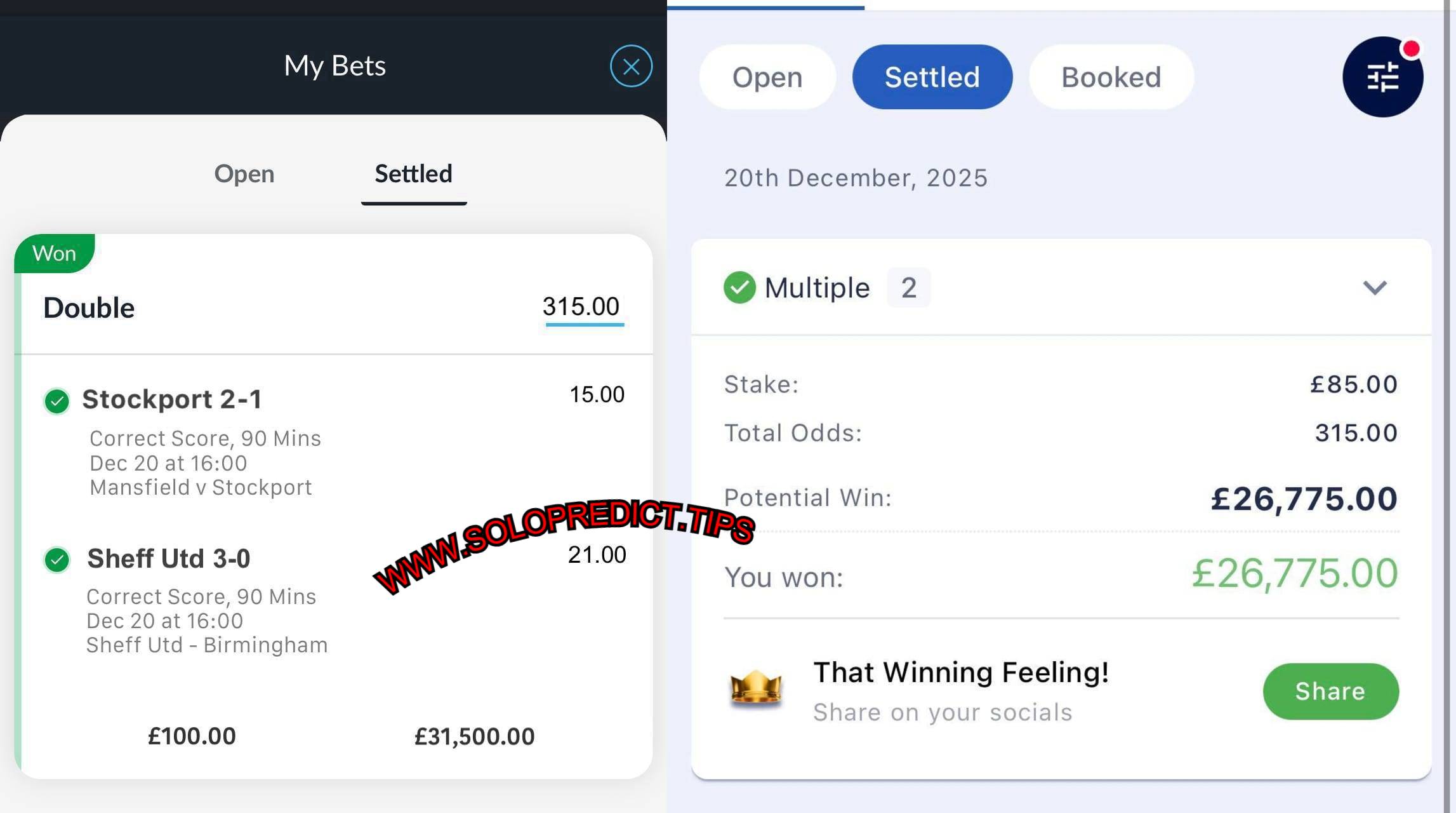 NEW REAL MULTIPLE BOOKMAKERS PROOFS 20/12/2025 (SATURDAY) 315.00 ODDS WON